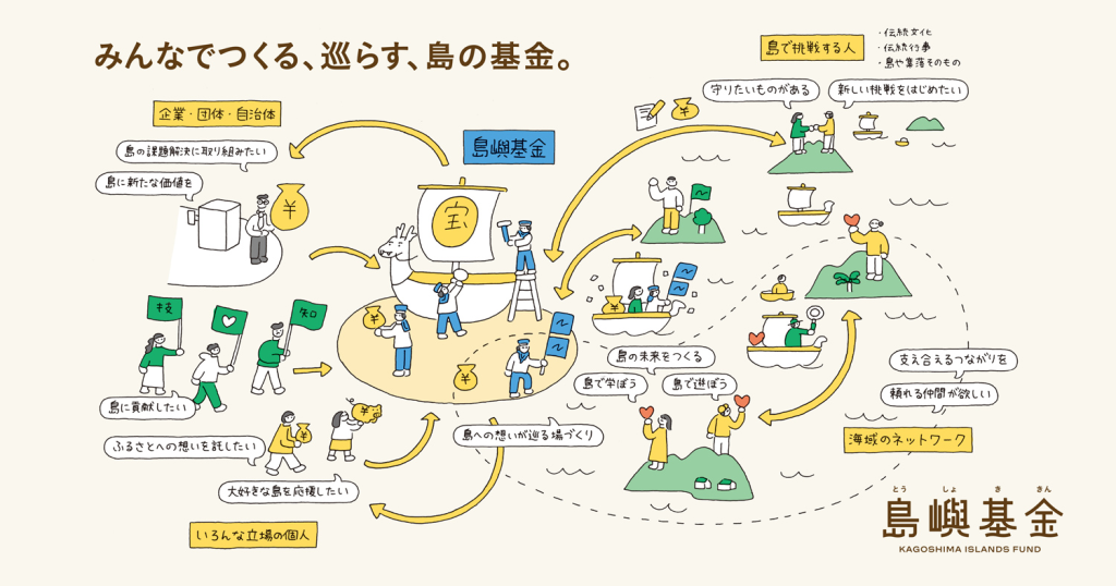 全国コミュニティ財団協会が実施する2023年度休眠預金等活用事業「コレクティブインパクトを生み出すローカルファンド創生事業」の支援先である、 東シナ海の島ブランド株式会社は、ファンド設立準備会を設置し、設立時財産300万円を含む1,541万円を837件の寄付によって集め、2025年7月30日に「一般財団法人かごしま島嶼ファンド」(通称=島嶼基金)を設立しました。
